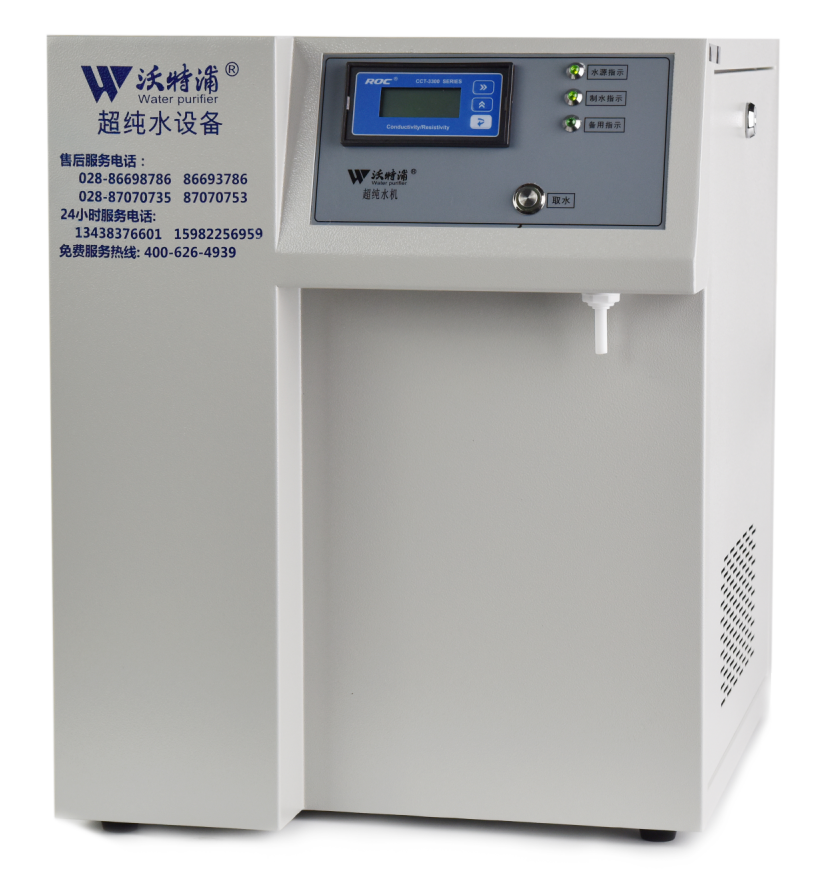 采用雙波長紫外消解系統,除熱源超濾膜組件,采用進口離子交換樹脂過濾,使超純水能滿足各種實驗要求。